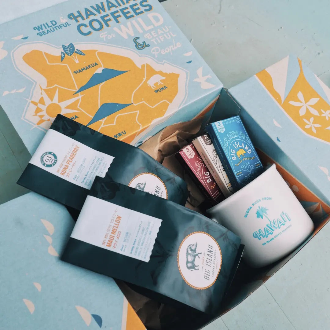 ハワイ諸島やさまざまなハワイモチーフが、ニックならではのレトロなタッチで描かれたアートボックスは、ハワイ好きな方に喜んでもらえること間違いなし。アフィシャナドウセット001をご購入いただくと、この特別ボックスに入れてお届けいたします。